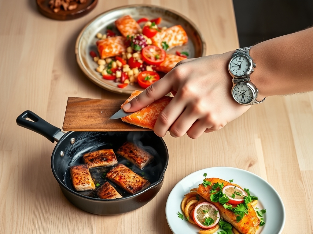 The flow begins with the "Cold Start" prep. While your skillet preheats on medium-high, you are seasoning and zesting. By the time the oil reaches its smoke point, your fish is ready. While the salmon renders its fat in the pan, you are deglazing and preparing your greens. This overlapping timeline ensures that every component hits the plate at the peak of its sensory profile. Never rush the rest; it is the most active part of the process for the protein fibers.