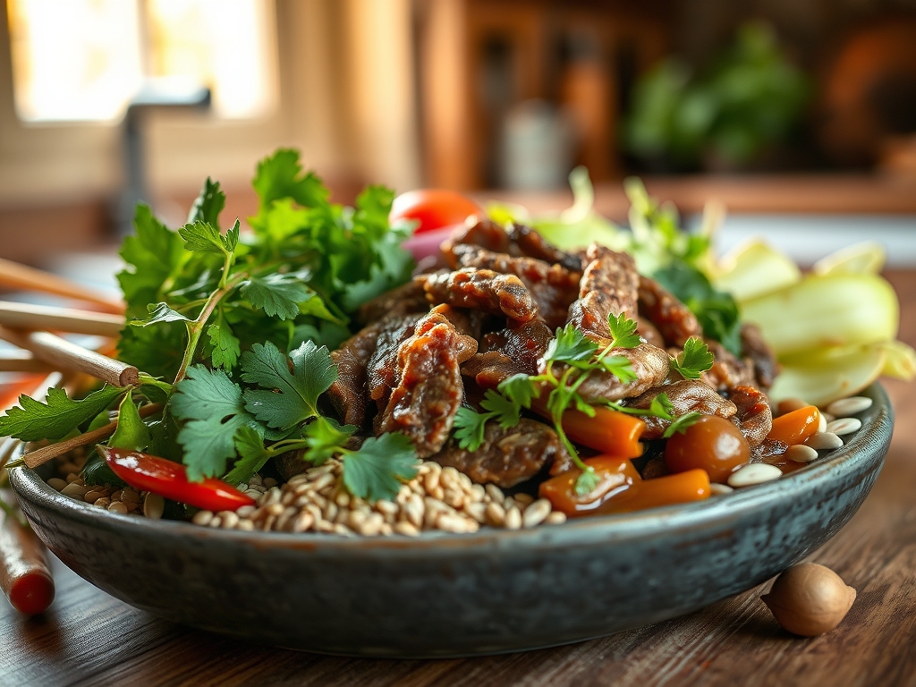 Macro Nutrition: A standard serving of this beef stir-fry provides approximately 35g of protein, 12g of healthy fats, and 8g of carbohydrates. It is a powerhouse of iron and B-vitamins, making it as functional as it is delicious.