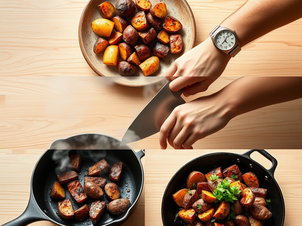 Efficiency in the kitchen is all about "Chef's Flow." Total active preparation time is fifteen minutes, while the oven does the heavy lifting for forty-five minutes. Start by preheating your oven with the baking sheet inside; this thermal head start ensures that the potatoes begin searing the moment they touch the metal. While the oven climbs to temperature, wash and cube your potatoes. Use a bench scraper to move your piles quickly and cleanly. By the time your oven chime sounds, your potatoes should be par-boiled and seasoned. This overlapping workflow ensures that you are never standing idle, maximizing the kinetic energy of your kitchen time.
