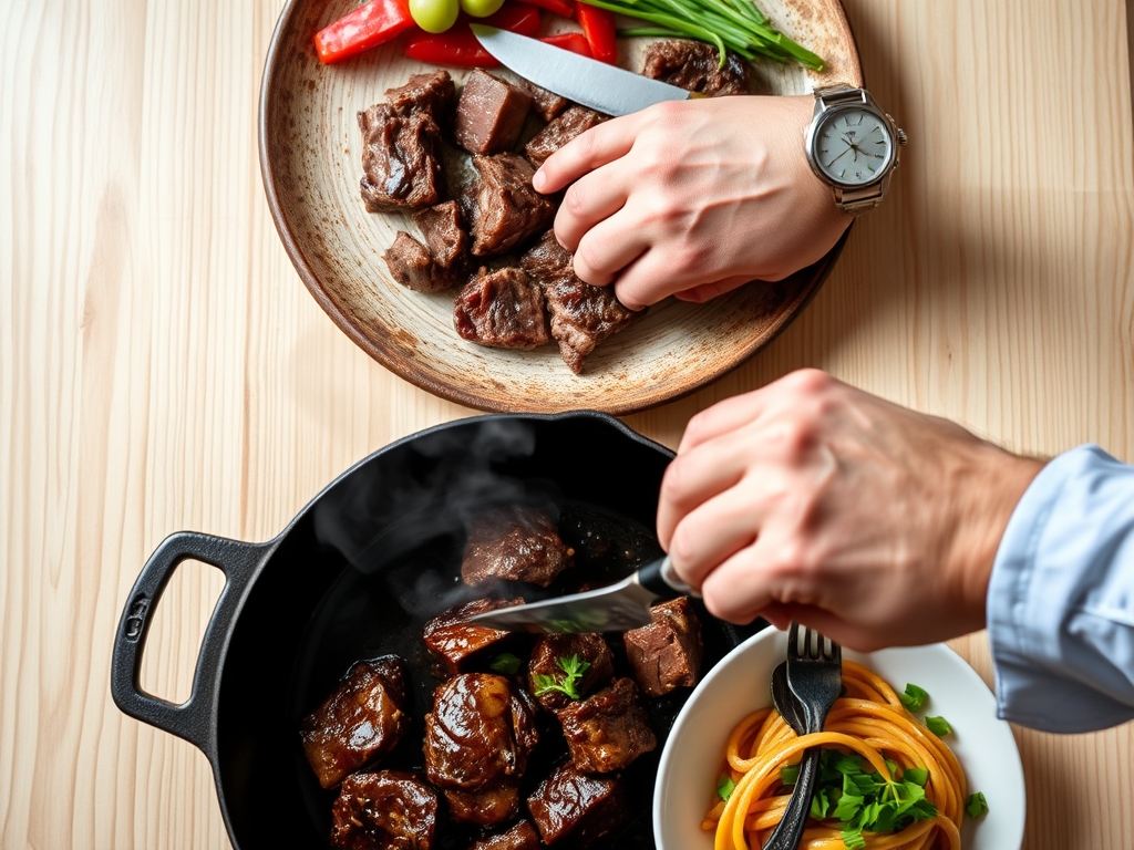 Start by patting your beef dry with a paper towel. Moisture is the enemy of the Maillard reaction. Place your steak in a screaming hot cast iron skillet. Once a deep brown crust forms, flip once. After removing the meat, immediately deglaze the pan with a splash of beef bone broth or dry red wine to lift those flavorful browned bits, known as fond.