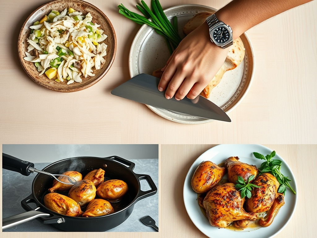 To execute these seven meals, your mise-en-place must be precise. Start with a high-quality, organic rotisserie chicken. Use a bench scraper to organize your workstation as you break the bird down into distinct components: succulent thighs, lean breasts, and the skin, which we will crisp up for texture.