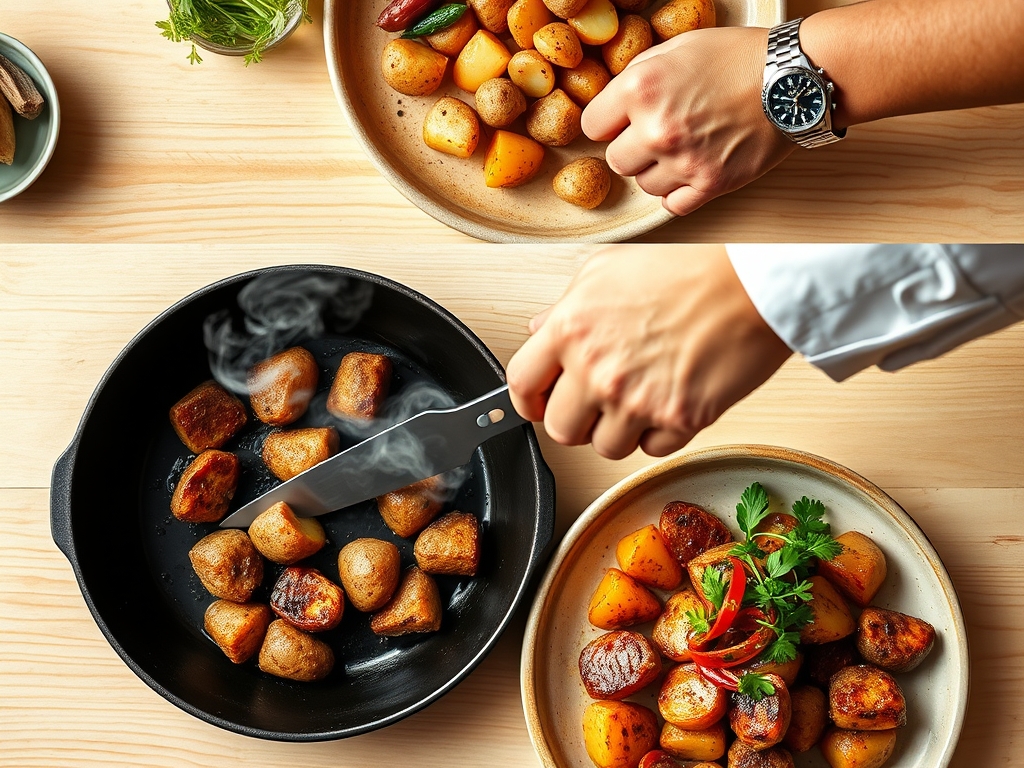 Absolutely. Placing cold potatoes on a cold pan leads to sticking and uneven browning. A hot pan sears the surface instantly, initiating the Maillard reaction and ensuring the potatoes release easily when it is time to flip.